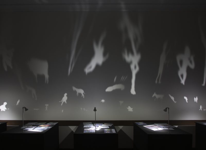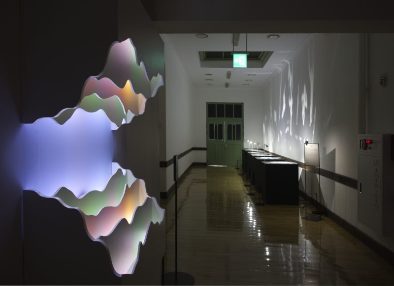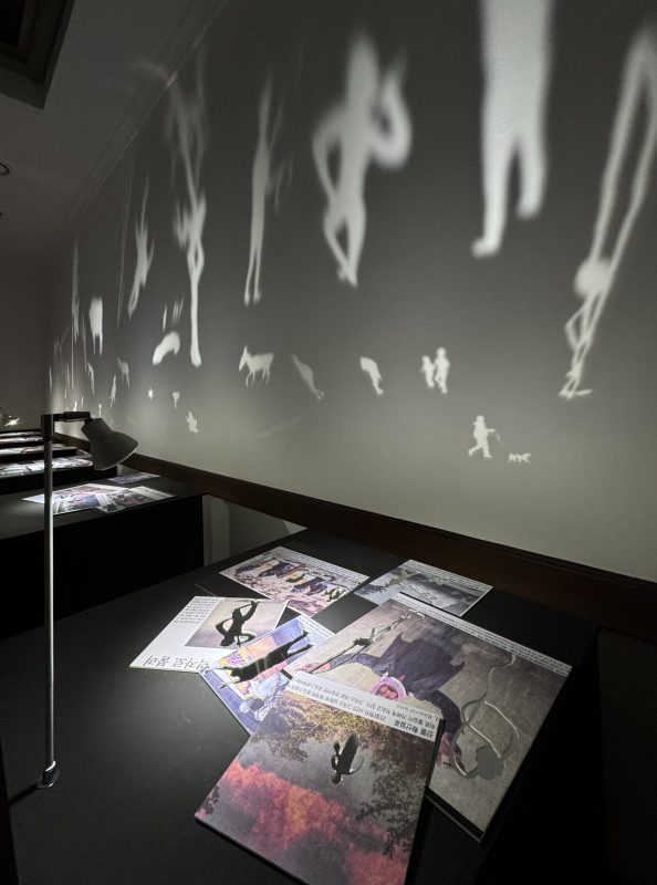 평행세계 설치는 최근 2~3년 사이의 신문기사와 보도사진을 이용해서 제작했다. 빛 실루엣 이미지는 현장에서 조합하는데 아직 마무리 단계에 있다.